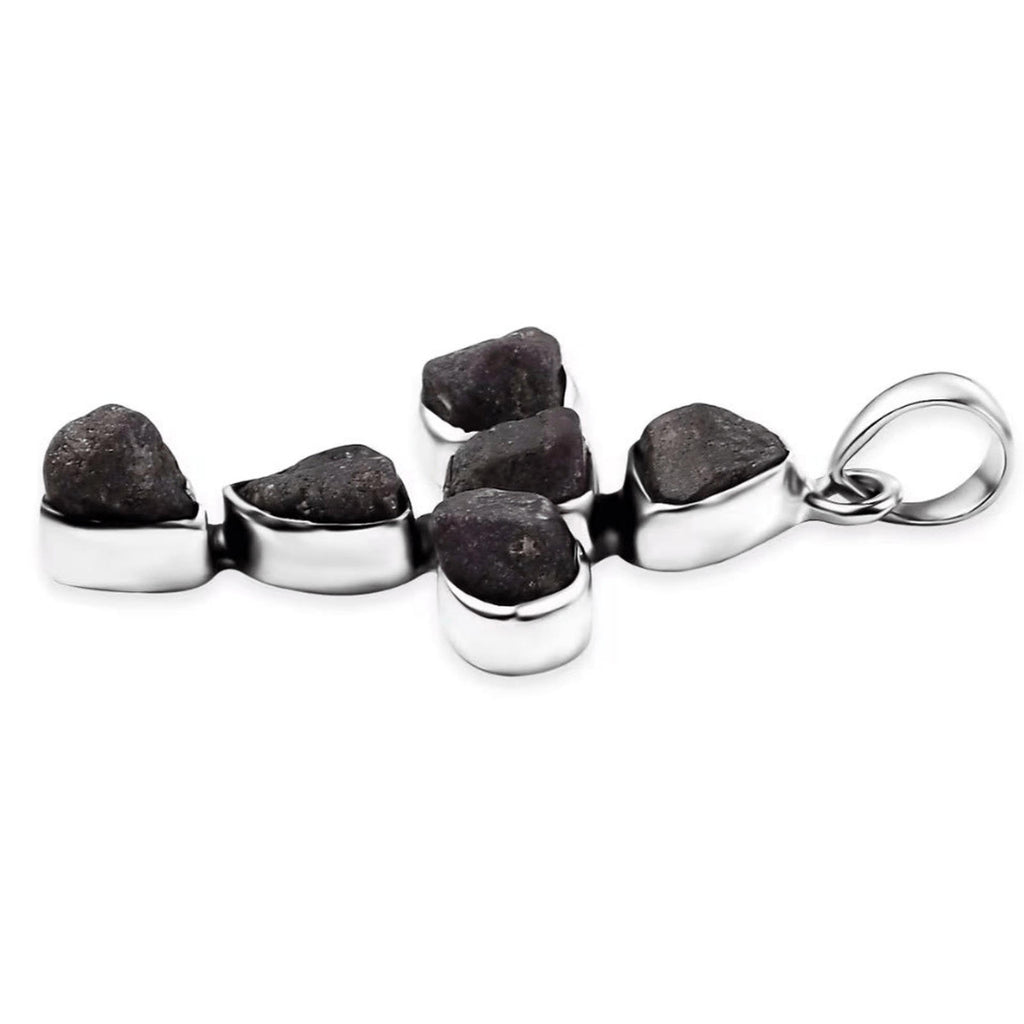 Artisan Crafted Rough Cut Moroccan Ruby 23.15 ctw Cross Pendant Necklace Sterling Silver
