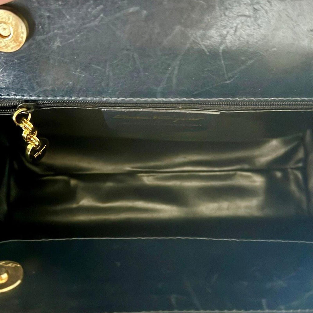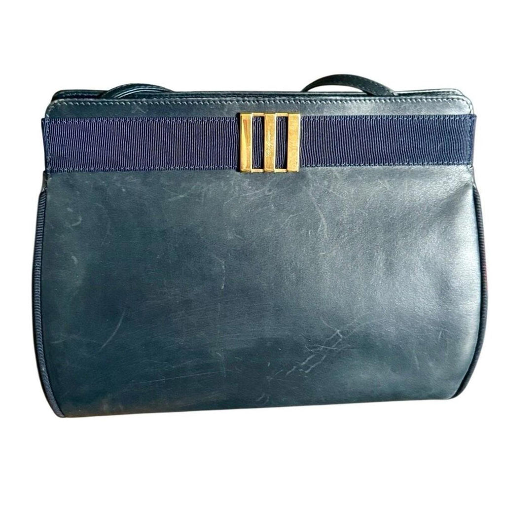 Authentic Salvatore Ferragamo Vara Bow Crossbody Bag - Navy Leather AN 21 3111 Vintage