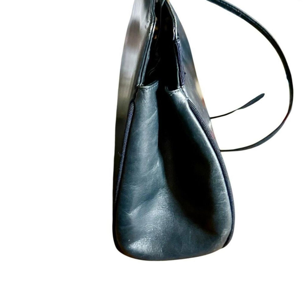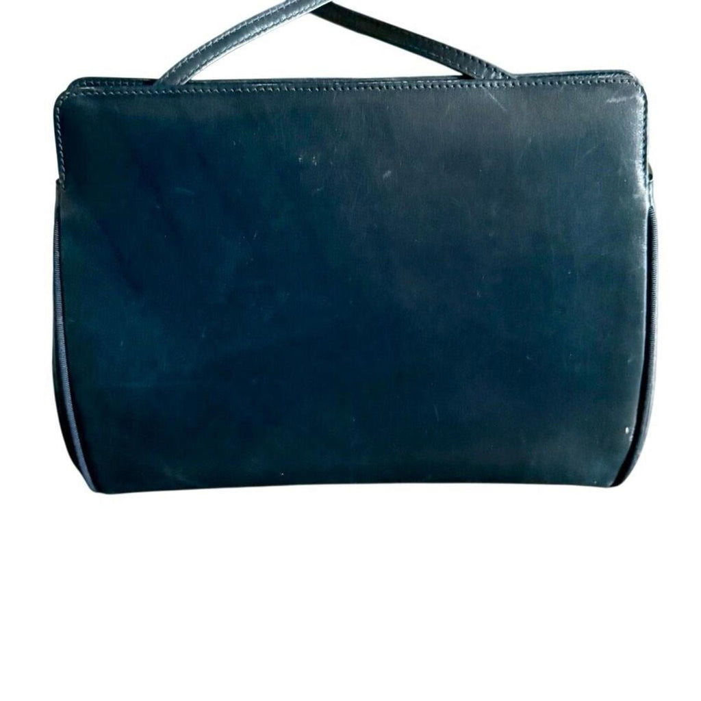 Authentic Salvatore Ferragamo Vara Bow Crossbody Bag Purse Navy Leather Vintage