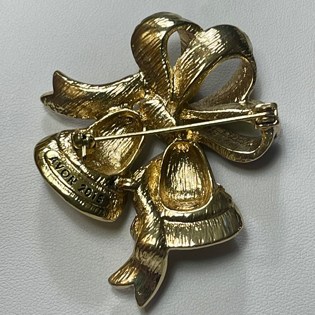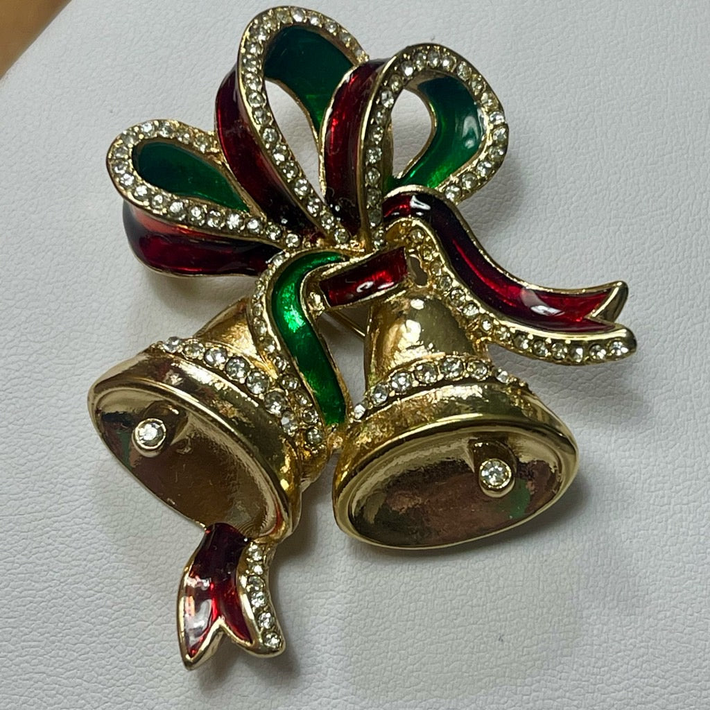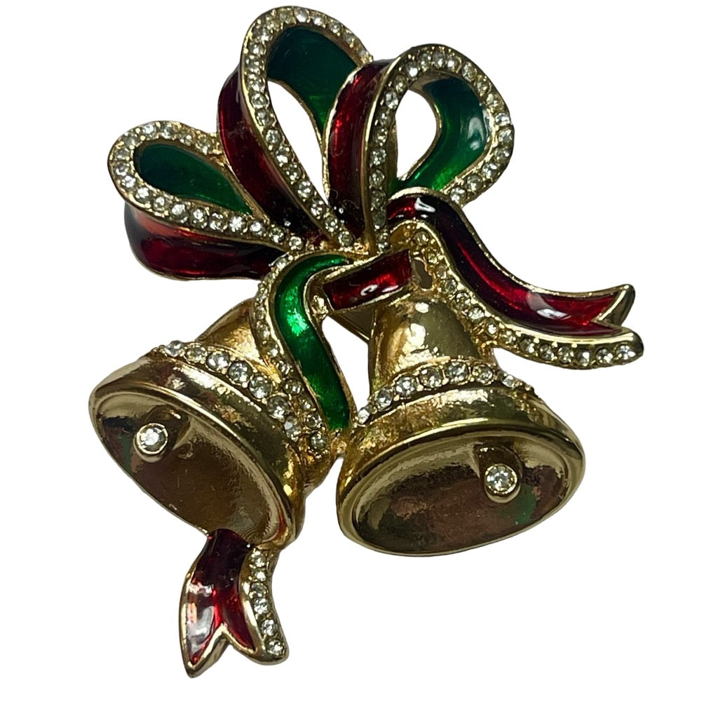 Holiday Jingle Bell Brooch Womens Avon 2015 Christmas Rhinestone Enamel Pin
