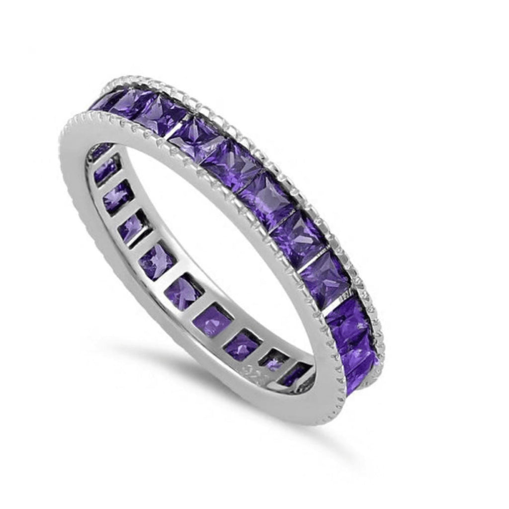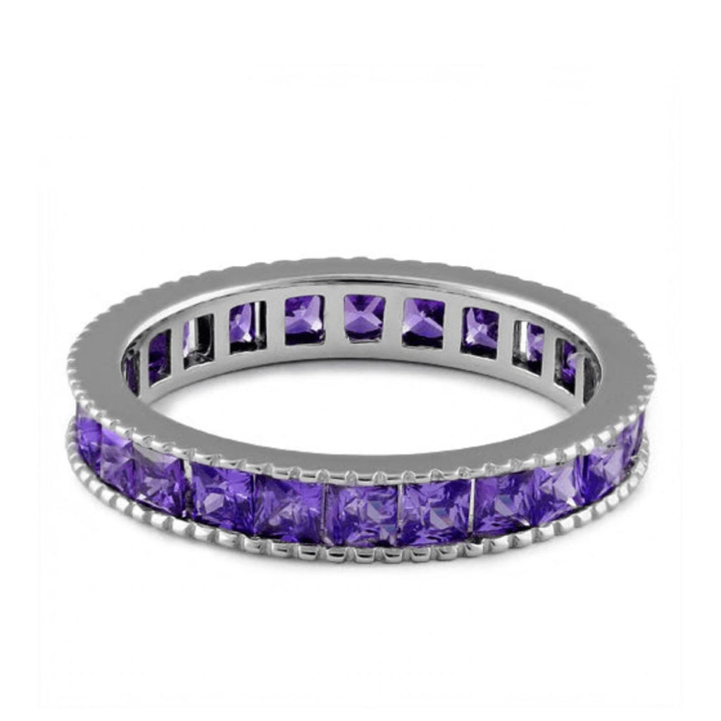 Sterling Silver Purple Amethyst CZ Eternity Band Ring Size 6 New