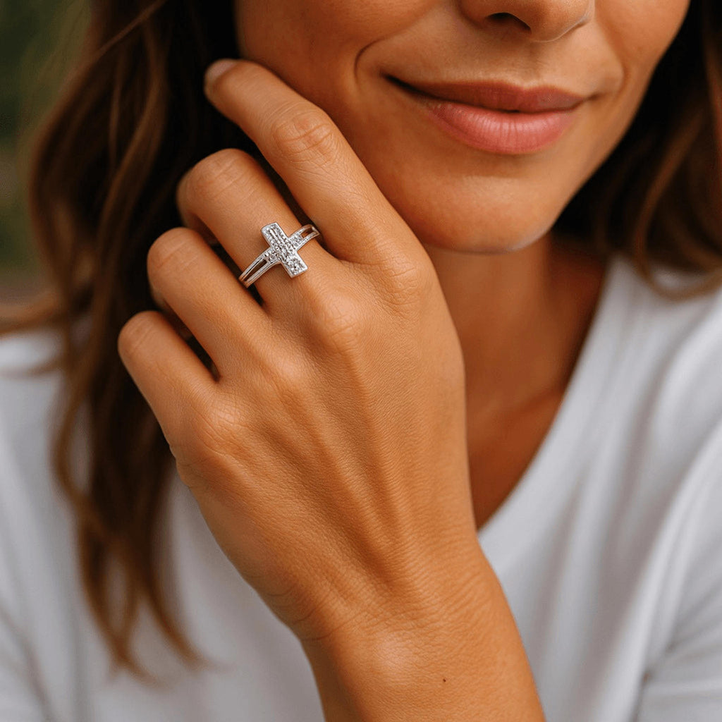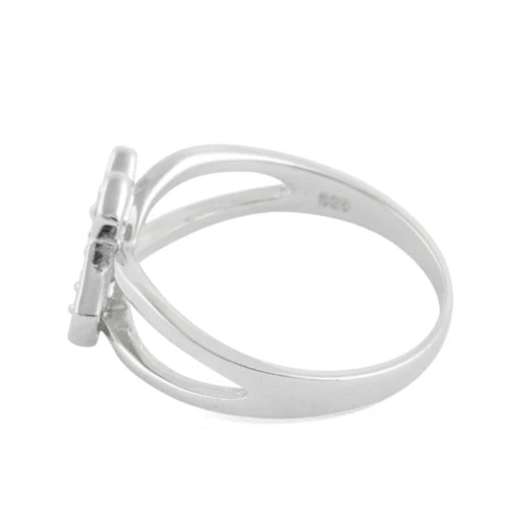 Sterling Silver Sideway Cross CZ Ring Size 6 New